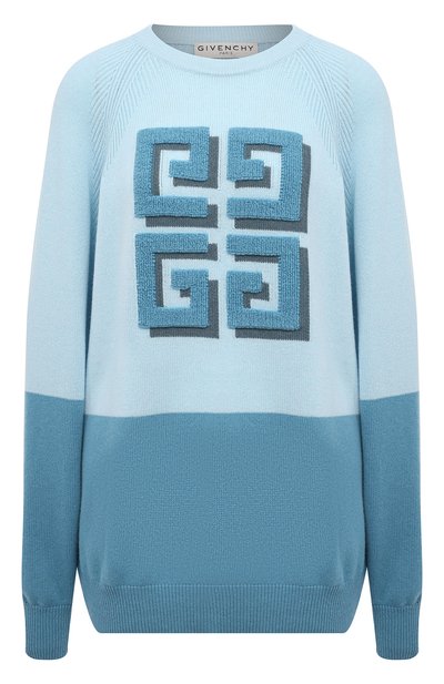 В весенне-летнюю коллекцию марки, основанной Пьером Бальманом, вошел пуловер, который в образе будет отвечать и за комфорт, и за яркость. Модель связали из плотной кашемировой пряжи, по легкости, нежности и теплу в восемь раз превосходящей шерстяную. Нижнюю часть вещи выделили голубым оттенком, а верхнюю — на пару тонов светлее и именно на нем сложили узор 4G. 3D-эффект у него сформировали серым кантом и плюшевой фактурой.