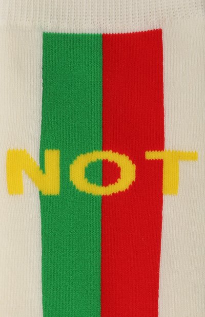 Для создания носков использовали легкую хлопковую пряжу с добавлением полиамида и эластана. Изделие из такого материала пропускает воздух, хорошо тянется и со временем не теряет форму. Универсальный черный цвет модели выступил удачным фоном для желтых надписей «not» и «fake» и двух широких полос, выполненных в цветах ленты Web.