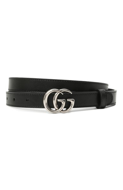 Ремень с пряжкой в виде GG-монограммы станет хорошим решением для базового гардероба. За счет черного цвета аксессуар из зернистой кожи подружится комплектом любой цветовой гаммы, а благодаря небольшой ширине его можно носить поверх платья или продеть в брюки.
