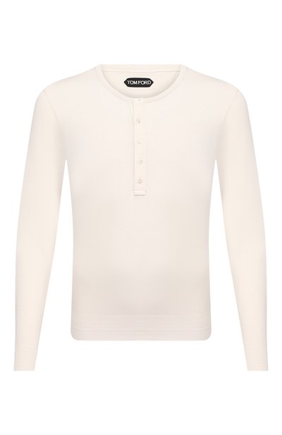Кремовый лонгслив с эластичным широким поясом и манжетами почти не ощущается на теле. Справиться с задачей помогает тонкий гладкий трикотаж: хлопок в его составе отвечает за циркуляцию воздуха, а модал делает изделие мягче и нежнее. Пуговицы на этой модели повторяют расположение планки у хенли.
