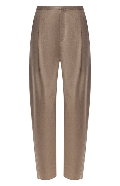 В сезоне весна-лето наши стилисты советуют включить в свой репертуар широкие брюки с защипами. Такая модель легко пропишется в базовом гардеробе. На универсальность работают спокойный бежевый оттенок и полное отсутствие декора. Мастера марки сшили изделие из плотной шерсти. Привычный широкий пояс здесь сделали уже и лишили его шлевок.