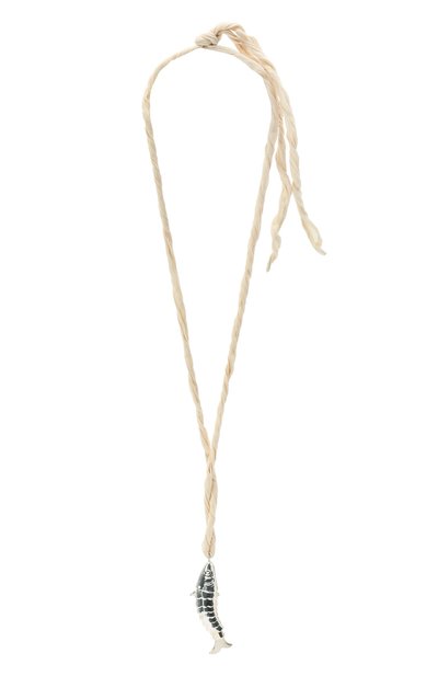 Белое колье одинаково гармонично дополнит как романтичное платье, так и casual-образ с футболкой и джинсами. Для изготовления аксессуара использовали легкое серебро 925 пробы, отполированное до зеркального блеска. Фигурное украшение в виде рыбы с тщательно проработанными плавниками и чешуей подвесили на текстильный шнурок нежного оттенка чайной розы.