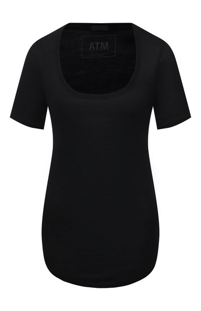 В сезоне весна-лето дизайнеры марки возвели минимализм в абсолют. Прямое доказательство — однотонная футболка. Чистый черный цвет делает свободную модель идеальным фоном для самых разных вещей. Для пошива изделия с круглым вырезом выбрали нежный трикотаж на основе невесомого микромодала, изготовленного на специальных вязальных машинах в Перу.