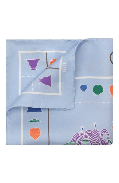 Для пошива голубого паше мастера марки использовали прочный шелк с разноцветным принтом. Материал почти не мнется и не деформируется после стирок, поэтому такой нагрудный платок надолго сохранит свой безупречный внешний вид. За счет цветовой гаммы аксессуар самодостаточно смотрится сольно и легко вступает в диалог почти с любым галстуком.