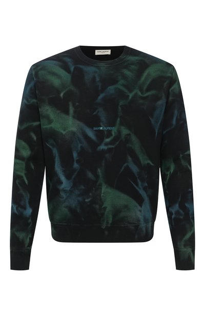 В весенне-летнюю коллекцию вошел свитшот из мягкого хлопкового футера с бархатистой изнанкой. Приятный на ощупь материал окрасили в технике тай-дай, создав неповторимый рисунок, напоминающий морские волны. Расслабленный образ поддержат черные джинсы и кеды.