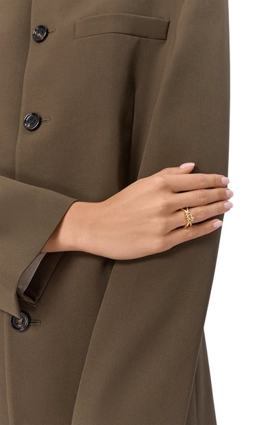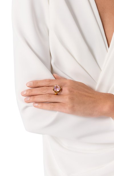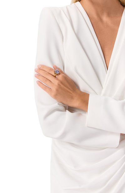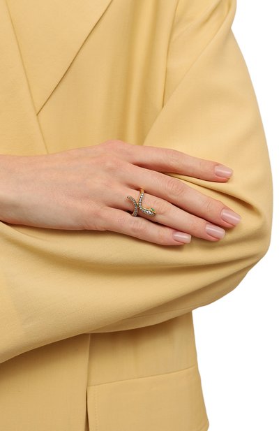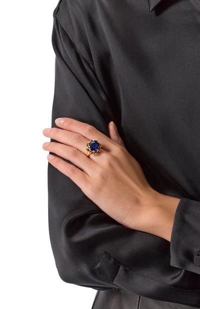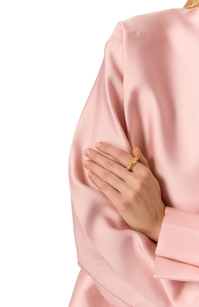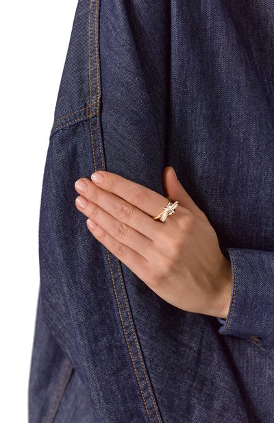 Несомкнутое спиралеобразное кольцо стилизовали под падающую звезду. Украшение, также как и прототип, мерцает благодаря кропотливо выложенному паве из кубического циркония, а динамику развевающегося за небесным телом шлейфа задали рельефным полосатым узором. Его выполнили н а основе из серебра 925 пробы, после чего нанесли напыление из 18-каратного золота.