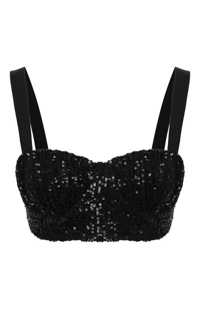Черный кроп-топ из мягкого тюля, вручную расшитого миниатюрными пайетками, может стать стилеобразующей деталью образа. Модель с чашечками на косточках и широкими гладкими бретелями вошла в коллекцию сезона весна-лето. Нам нравится сочетать с блейзером, юбкой и мюли в тон.