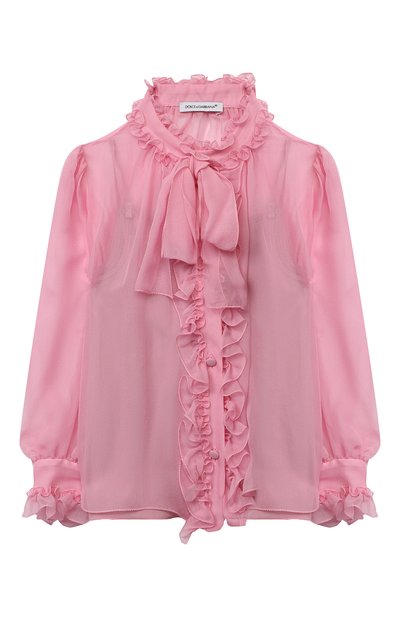 По-девичьи застенчивый оттенок этой блузы, дополненной подкладкой-топом в тон, словно позаимствовали у клубничного сорбета. Романтичное настроение модели из тонкого воздушного шифона поддерживают рельефные рюши и воротник аскот с длинными лентами, которые можно завязать на бант.