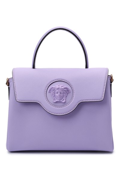 Сумка La Medusa нежного лавандового оттенка сделает выразительнее самый простой образ и органично впишется в комплект из ярких вещей. Донателла Версаче выбрала для изготовления аксессуара, впервые представленного в сезоне весна-лето 2021 года, мягкую высококачественную кожу с крупным зернением. Модель, украшенную знаковым барельефом в виде головы горгоны Медузы, дополнили съемными плечевым ремнем и массивной цепью.