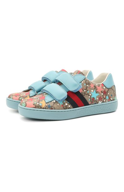При производстве низких кедов ставку сделали на контраст фактур и цветов. Верх сшили из прочного разноцветного текстиля с полиуретановым покрытием, которое не промокает и не пачкается. А для двойных ремешков с застежками велькро и нашивок выбрали матовую мелкозернистую кожу. На создание обновленного GG-паттерна в сочетании с яркими звездами дизайнера марки вдохновило ночное небо.
