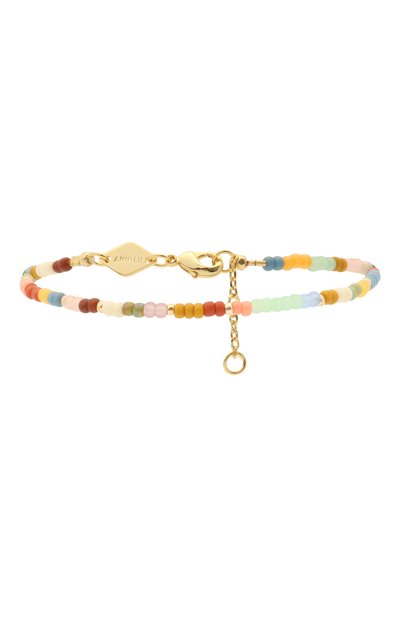 В случае с этим узким браслетом дизайнеры бренда сделали ставку на яркие оттенки. Аксессуар собрали из стеклянных бусин, которые окрасили в разные цвета. Длину украшения удобно регулировать за счет тонкой цепочки и миниатюрного карабина из легкого гипоаллергенного сплава.