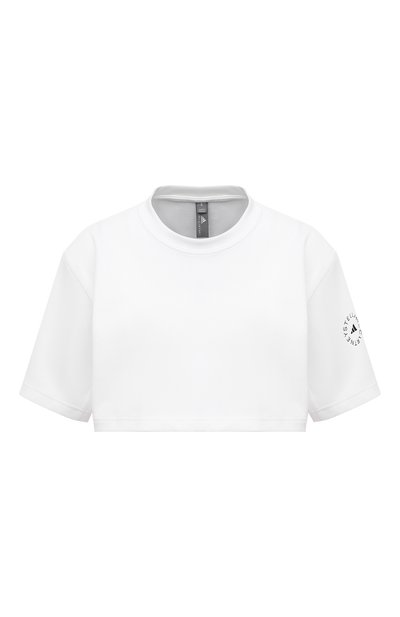 Белоснежная укороченная футболка силуэта oversize станет хорошим вариантом как для повседневного образа с джинсами, так и спортивного с велосипедками. Для пошива модели использовали легкий трикотаж, в котором дышащий органический хлопок смешали с переработанным нейлоном. Материал с плотным переплетением пряжи хорошо тянется, но не деформируется.