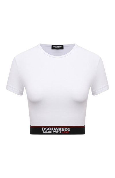 Белый кроп-топ из весенне-летней коллекции напоминает укороченную футболку с круглым вырезом и короткими рукавами. В такой модели будет комфортно весь день: мягкое хлопковое джерси хорошо пропускает воздух, а за счет высокого содержания эластана легко тянется во всех направлениях, но не деформируется. Черный широкий пояс украсили жаккардовым логотипом марки.