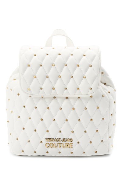 В весенне-летней коллекции Донателла Версаче пополнила линию сумок Mallory белым вместительным рюкзаком. Неизменным декором остался стеганый ромбовидный узор, подчеркнутый конусовидными шипами. Их золотистый блеск поддержали накладкой в виде логотипа бренда на передней панели. Для пошива аксессуара, затягивающегося узким шнуром под откидным клапаном, использовали мягкую матовую кожу.