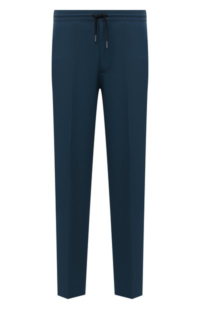 Прямые бирюзовые брюки из весенне-летней коллекции бренда, основанного Алессандро Берлути, удачно дополнят повседневный образ с футболкой, свитшотом или джемпером. Для пошива модели с застроченными стрелками использовали тонкий шерстяной твил, который почти не мнется и не пилингуется, долго сохраняя опрятный вид. За удобную посадку на талии отвечает широкий пояс с регулируемой кулиской, как у джоггеров.