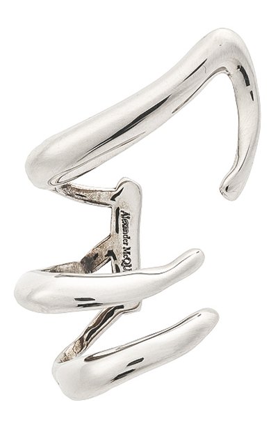 Чтобы привлечь внимание, этому каффу не нужны яркий цвет и россыпи сверкающих кристаллов. С такой задачей отлично справляется драматичный силуэт с тремя нарочито неровными ярусами, соединенными сзади узкой пластиной. Благодаря такой форме аксессуар из ювелирного сплав а с серебряным покрытием выглядит на ухе, как сет из трех украшений.