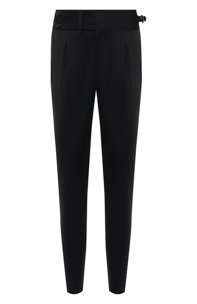 Черные брюки из весенне-летней коллекции идеально справляются с многозадачностью. Зауженная модель удачно вписывается как в расслабленный ансамбль с футболкой и джинсовой курткой, так и элегантный образ с сорочкой и пиджаком. Доменико Дольче и Стефано Габбана выбрали для пошива изделия с широким поясом с двумя ремешками мягкий шерстяной габардин, который будет выглядеть опрятно в любой ситуации.