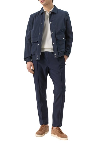 Кремовое поло из весенне-летней коллекции отвечает основным требованиям, предъявляемым к повседневной одежде. Для изготовления модели с короткими рукавами, украшенными шевронным узором, использовали тонкий хлопок. В состав легкого трикотажа добавили прочный шелк, поэтому нежный на ощупь материал мягко облегает фигуру и не деформируется со временем.