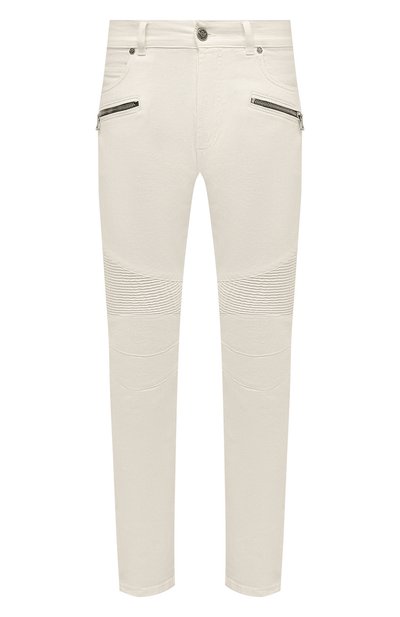 Еще один способ разнообразить белоснежные джинсы — добавить им байкерские детали, как это сделал Оливье Рустен, работая над этой зауженной моделью из весенне-летней коллекции. Брюки из мягкого эластичного денима дизайнер вывел на новый уровень с помощью фактурных стеганых вставок и металлических молний по бокам. Попробуйте создать монохромный образ в сочетании с черными футболкой и кедами.