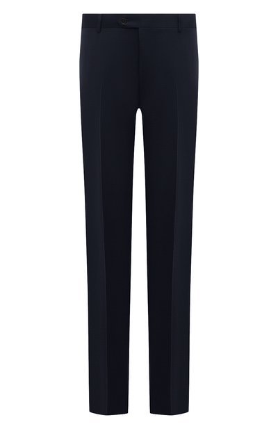 Прямые синие брюки со стрелками – многофункциональный предмет в гардеробе. Такая вещь одинаково гармонично дополнит и наряд для офиса со строгим дресс-кодом, и менее формальный обра з с поло, пиджаком и лоферами. Для пошива модели из весенне-летней коллекции марки, основанной братьями Канали, использовали тонкий шерстяной габардин. Этот материал почти не мнется и не пилингуется, поэтому изделие будет долго выглядеть опрятно.