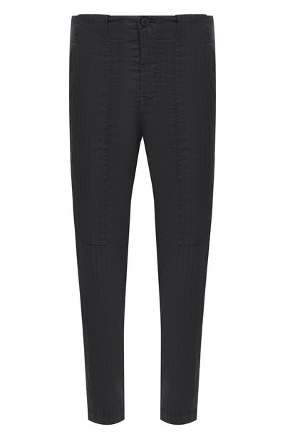 Темно-серые брюки из весенне-летней коллекции будут базой для создания спокойного повседневного образ. Неформальной прямую модель сделали мягкий силуэт, два крупных накладных кармана и легкая ткань с вышивкой в технике шеврон. Материал из хлопка и льна позволяет коже дышать. Вещь лишили пояса, но для удобства предусмотрели шлевки для ремня.