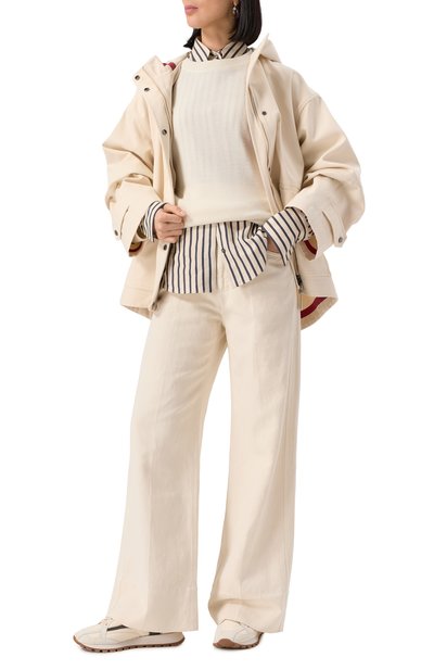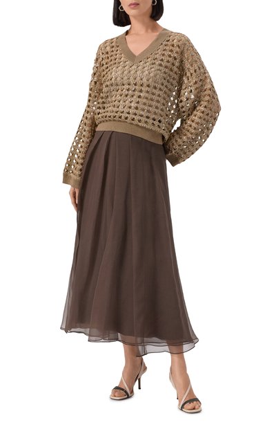 Светло-розовый пуловер из весенне-летней коллекции выигрывает у обычных вариантов, стоит только прикоснуться к нему. Мастера марки, основанной Пьетро Лоро Пьяна, выполнили модель из тонкой шерсти викуньи, диаметр волокон которой меньше, чем у обычного кашемира. Благодаря такой структуре изделие особенно легкое и нежное. С одного животного можно получить всего 200 граммов в год, а для изготовления такой вещи требуется материал с пяти-шести особей.