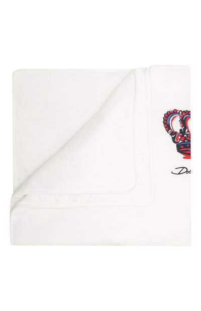 Для изготовления белоснежного одеяла мастера марки использовали нежное джерси из гипоаллергенного длинноволокнистого хлопка. Изделие из такого материала не раздражает кожу и не мешает воздуху циркулировать, а благодаря тонкому слою легкого утеплителя поддерживает оптимальную температуру, не перегревая. Модель декорировали крупным принтом в виде знаковой короны и вышитым логотипом бренда.