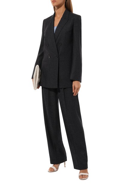 Для создания брюк свободного кроя использовали хлопковый трикотаж с добавлением полиэстера. Модель с высокой посадкой и двумя врезными карманами застегивается потайной молнией сбоку.