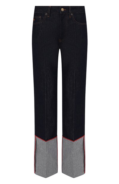 Темно-синие джинсы из весенне-летней коллекции выглядят как ностальгия по 1970-м, но в современном прочтении предлагаем носить их с жилетом, словно позаимствованным из мужского гардероба, свободной кожаной курткой и лоферами. Для пошива расклешенной модели с завышенной посадкой и отутюженными стрелками Виктория Бекхэм выбрала плотный сырой деним, который со временем приобретет индивидуальные черты.