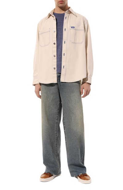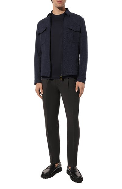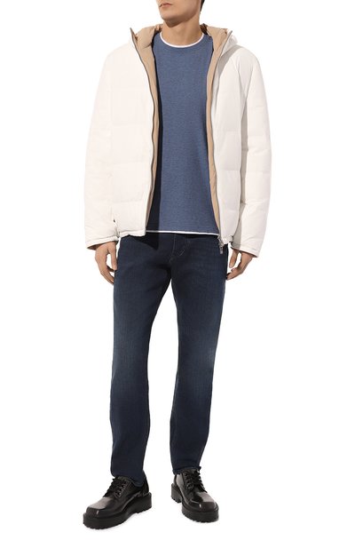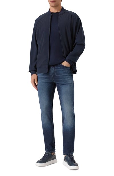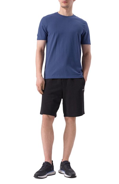 Синяя футболка выглядит так, словно ее сшили из шелка. Такую иллюзию формируют гладкие отборные волокна премиального египетского хлопка, которые придают фактуре эластичного джерси характерный блеск. Легкий материал не вытягивается и не пилингуется даже после многократных стирок. Серый меланжевый кант по краям изделия создает эффект многослойности.