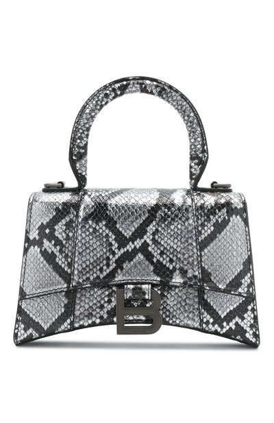 При миниатюрном размере сумка Hourglass из осенне-зимней коллекции марки, основанной Кристобалем Баленсиагой, разнообразит комплект. На это в модели работает и форма «песочные часы», и материал. Демна Гвасалия выбрал для создания аксессуара со съемным плечевым ремнем плотную кожу с узором, как на теле питона, который эффектно переливается серебристыми оттенками. Внутрь поместятся картхолдер, смартфон, ключи и зеркало.