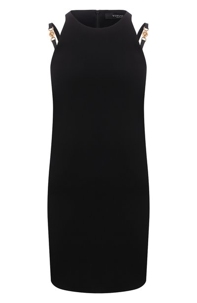 Маленькое черное платье из весенне-летней коллекции Донателла Версаче сделала лаконичным, но при этом не лишила его индивидуальности. Дизайнер дополнила модель с круглым вырезом узкими бретелями с пряжками, на которых привычную голову горгоны Медузы заменили оттиском в виде морской звезды. Изделие сшили из плотного вискозного кади.