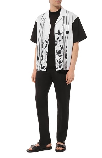 Сандалии выполнили из гладкой блестящей кожи, дополнив пару ребристыми текстильными лентами, одна из которых скрывает застежку велкро. Пару с мягкой накладкой на заднике установили на резиновую подошву с протектором.