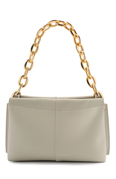 Для пошива мятной сумки Carly Chain из весенне-летней коллекции Эльза Вандлер выбрала гладкую матовую кожу. На ее фоне особенно эффектно смотрится ручка в виде золотистой цепи с гипертрофированно крупными звеньями, уравновесившая спокойный оттенок. Внутрь поместятся кошелек, смартфон и солнцезащитные очки.