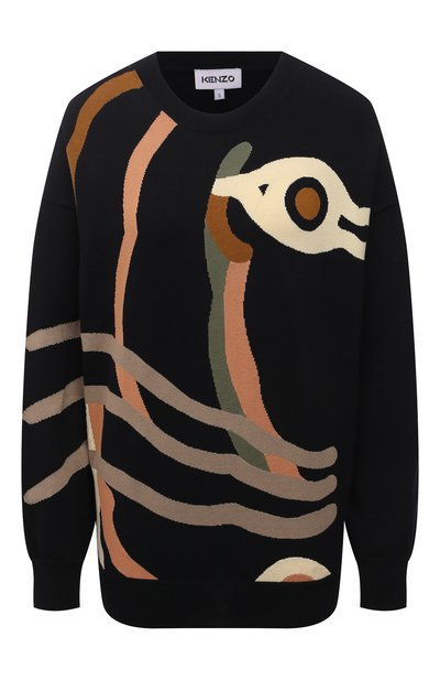 В поддержку организации WWF, стремящуюся удвоить популяцию тигров до 2022 года, Фелипе Оливейра Баптиста создал капсульную коллекцию. В нее вошел этот черный пуловер с коричневым абстрактным мотивом, в котором угадывается изображение хищника. Модель связали из тонкого органического хлопка, выращенного без применения химикатов и пестицидов.