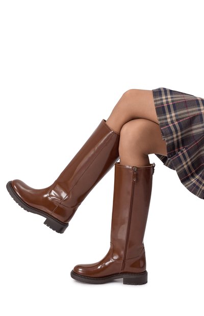 В сапогах 68 из осенне-зимней коллекции особенное внимание уделили силуэту. Облегающее голенище, которое следует за формой ноги, продолжает высокий устойчивый каблук. Молния по всей длине не только выполняет функциональную роль, но и задает строгую вертикаль. Для изготовления модели мастера марки, основанной Ивом Сен-Лораном, использовали мягкую гладкую кожу с матовым блеском.