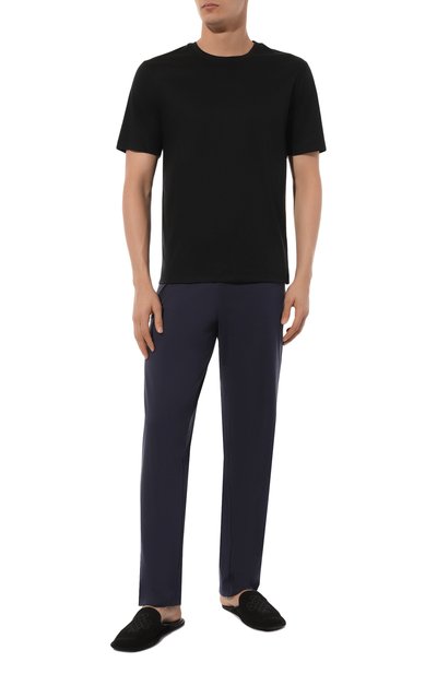 Для производства черной футболки мастера марки использовали мягкий легкий модал. Его волокна быстро впитывают и эффективно отводят влагу от тела, поэтому в изделии будет комфортно в течение всего дня. За счет добавления эластичных нитей модель немного тянется, не сковывая движения.