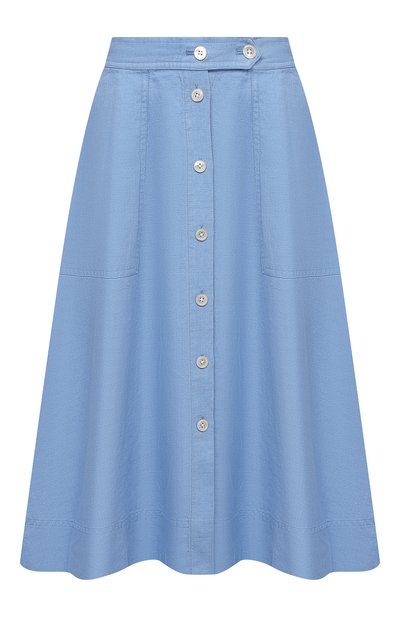 В весенне-летнюю коллекцию марки, основанной Ральфом Лореном, вошла расклешенная миди-юбка небесного оттенка. В такой модели будет комфортно даже в жаркую погоду. Все дело в материале: дышащий фактурный лен способен поддерживать температуру между телом и тканью на 3-4 градуса ниже, чем в окружающей среде.