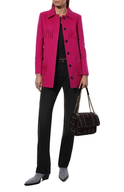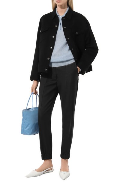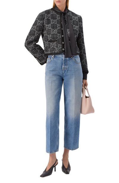В осенне-зимнюю коллекцию вошел синий жакет с клетчатым мот ивом «принц Уэльский». Для пошива изделия с молнией Джорджио Армани выбрал мягкую шелковистую шерсть: она слегка тянется, поэтому вещь комфортно садится по фигуре. Наши стилисты предлагают сочетать такую модель с брюками в тон и белыми мюлями.