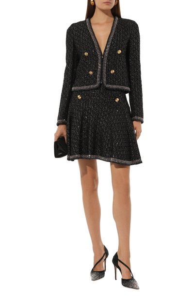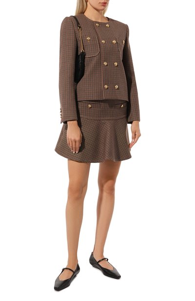 В осенне-зимнюю коллекцию вошел синий жакет с клетчатым мотивом «принц Уэльский». Для пошива изделия с молнией Джорджио Армани выбрал мягкую шелковистую шерсть: она слегка тянется, поэтому вещь комфортно садится по фигуре. Наши стилисты предлагают сочетать такую модель с брюками в тон и белыми мюлями.