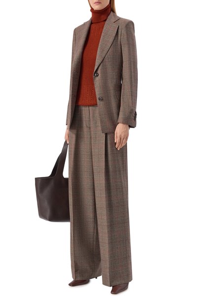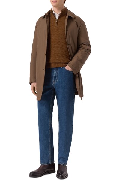 У коричневого свитера из осенне-зимней коллекции марки, основанной Пьетро Лоро Пьяна, много достоинств, но главное раскрывается при прикосновении. Модель получилась практически невесомой, но при этом нежной и уютной, как домашний плед, благодаря тончайшему baby-кашемиру. Легкий пух для него вручную вычесывают ранней весной у молочных горных козлят редкой породы Hircus, а затем бережно очищают и промывают ключевой водой. Чтобы связать это изделие с вор отником-стойкой, понадобился подшерсток более 20 животных.