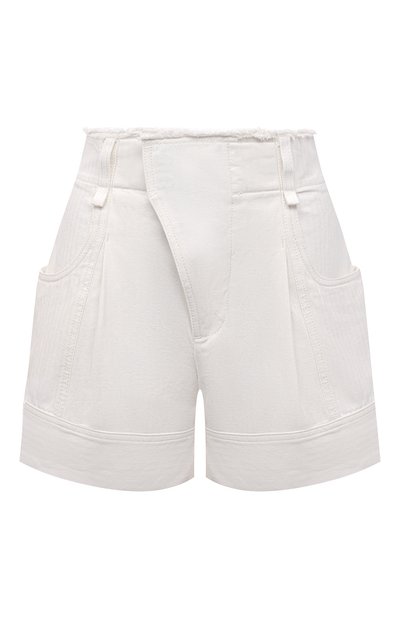 В сезоне весна-лето Наташа Рамсей-Леви дополнила несколько брюк потайной диагональной молнией, в том числе эти белые шорты из мягкого денима. Такой асимметричный крой в сочетании с комфортной завышенной посадкой и необработанным краем пояса формируют отчетливый ретро-силуэт. В современном прочтении рекомендуем носить модель с кардиганом, босоножками и сумкой.