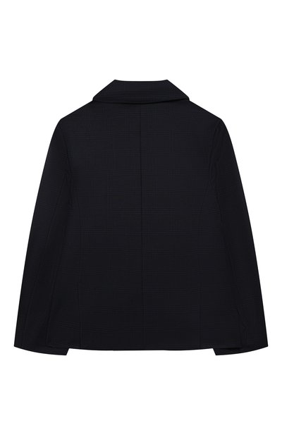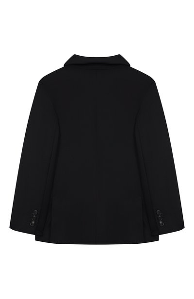 Однобортный пиджак на вискозном подкладе выполнили из шерстяной ткани. Модель с нагрудной и парой боковых листочек застегивается двумя брендированными пуговицами.