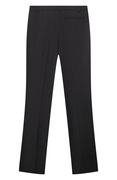 Графитово-серые однотонные брюки сшили из тонкой мягкой шерсти. Плотное переплетение нитей делает этот материал прочным и почти немнущимся, поэтому модель будет долго сохранять опрятный вид. Изделие с четкими стрелками станет удачным вложением в школьный гардероб.