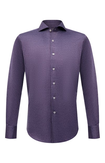 В осенне-зимнюю коллекцию вошла фиолетовая рубашка. Благодаря сочетанию нейтрального оттенка, классического кроя и нежного хлопкового трикотажа с меланжевым эффектом модель одинаково гармонично будет выглядеть и в повседневном образе, и в офисном (если дресс-код допускает отступления). За счет фигурного низа изделие можно носить и заправленным за пояс, и навыпуск.