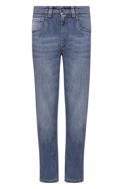 Синие укороченные джинсы из осенне-зимней коллекции без труда пропишутся в повседневном гардеробе. Для пошива модели мастера бренда, основанного Брунелло Кучинелли, использовали мягкий прочный хлопок. В чистом виде его волокна плохо тянутся, поэтому, чтобы вещь комфортно садилась по фигуре, в состав добавили гладкие эластичные нити.