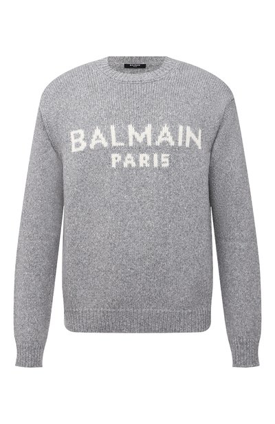 В осенне-зимнюю коллекцию марки, основанной Пьером Бальманом, вошел серый меланжевый свитер. Мастера бренда связали модель из нежной мериносовой шерсти. Ее тонкие волокна наполнены микропузырьками воздуха, поэтому вещь из такого материала поддерживает оптимальную температуру, не давая замерзнуть в прохладную погоду и не перегревая в помещении. Оливье Рустен украсил изделие спереди крупным белым логотипом, выполненным в технике интарсии.