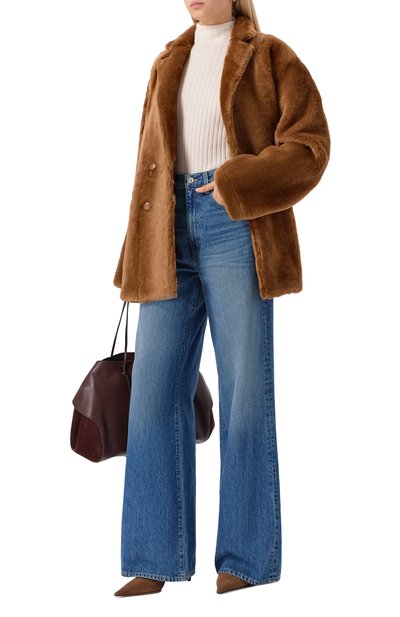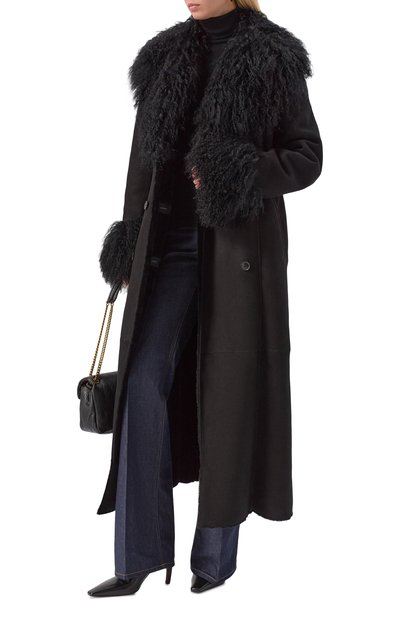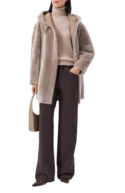 В осенне-зимнюю коллекцию марки, основанной Пьетро Лоро Пьяна, вошла дубленка карамельного оттенка. Модель с широкими шалевыми лацканами получилась максимально теплой, но при этом легкой и мягкой. Все дело в тщательной бережной выделке овчины с пушистым густым ворсом. У вещи с длинным поясом-лентой есть секрет: крой позволяет носить ее мехом наружу, как шубу.