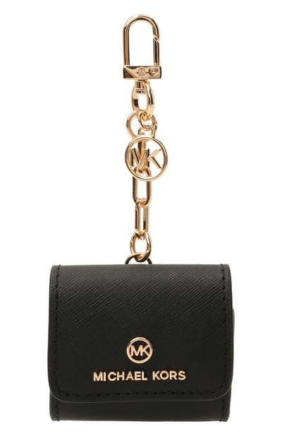 Черный чехол для AirPods удобно брать с собой. С помощью крупного карабина на съемной цепочке его можно прикрепить как к сумке, так и к одежде. Для изготовления аксессуара мастера марки использовали матовую кожу с тиснением. Изделие дополнили миниатюрной подвеской в виде инициалов дизайнера.