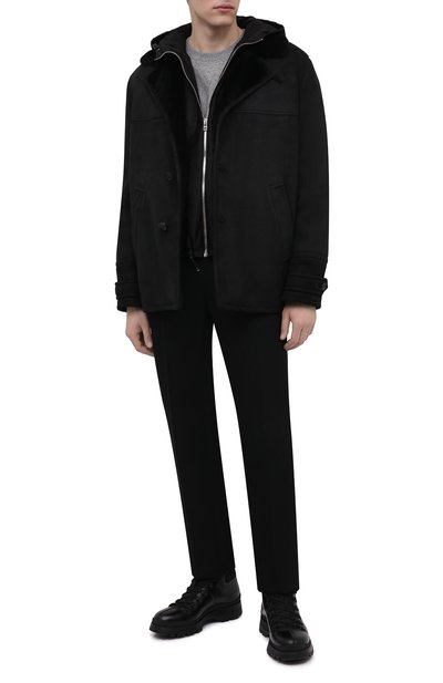 Черный бомбер с двумя накладными карманами вошел в осенне-зимнюю коллекцию. Непревзойденный уровень комфорта короткой куртке обеспечивает пластичная овчина, которая хорошо согревает и долго сохраняет безупречный вид. Дополнительную защиту от ветра обеспечивают характерные для таких моделей трикотажные воротник и манжеты.